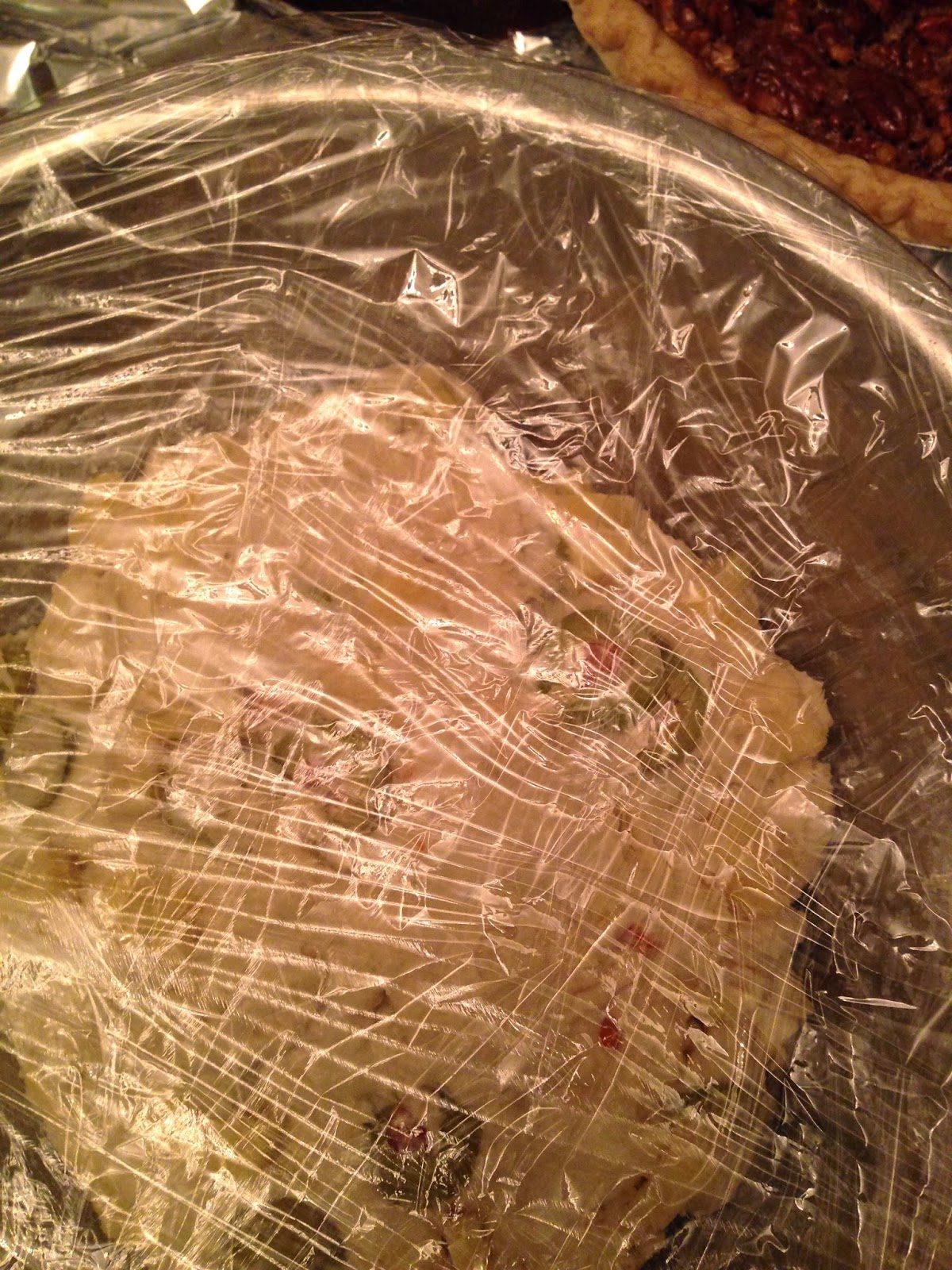 This was huge! I got caught up in eating and didn't take too many pics of the finished products but it was a lot! The turkey turned out very flavorful and tender, the stuffing moist, the empanadas crisp, the mashed potatoes always my fave no matter I have to eat, cranberry jelly was not sampled by me, the pumpkin pie was good, the pecan had waaay too many nuts I don't know what I did, but all in all, I had a great feast.